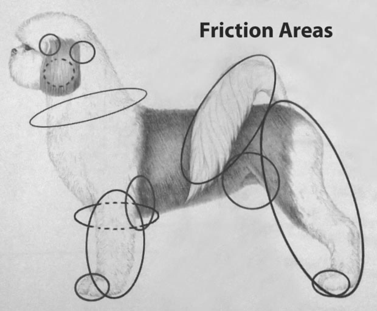 Pay special attention to the areas marked, as these are the places matting is more likely to occur.